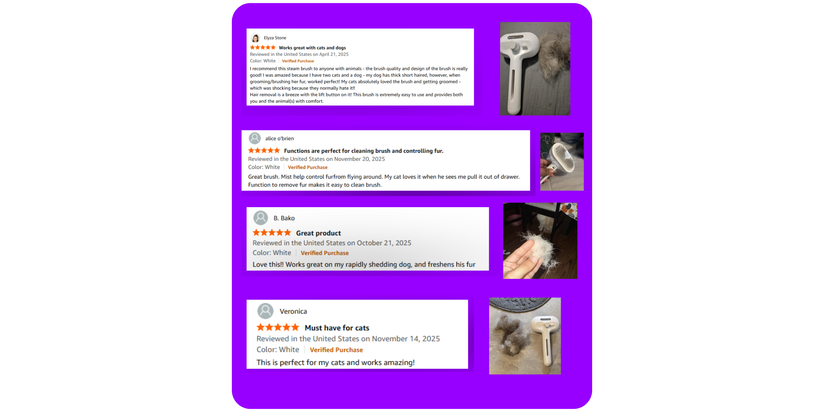 Daily grooming has never been easier โ the gentle mist and soft bristles leave their fur smooth, shiny, and completely tangle-free.