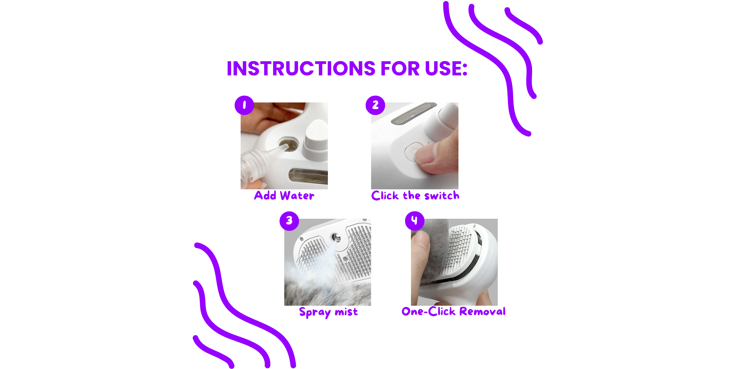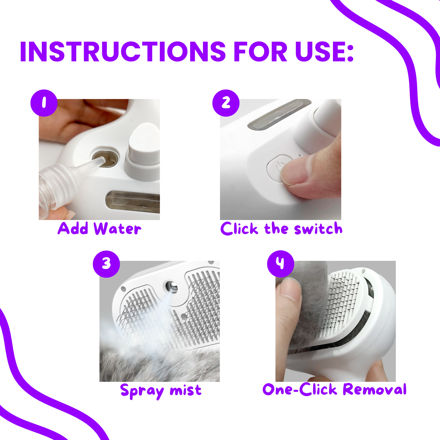 Simply fill the built-in reservoir with water or a light conditioner and press to release a fine mist while brushing โ this helps reduce shedding, detangle knots, and leave the coat soft and shiny.